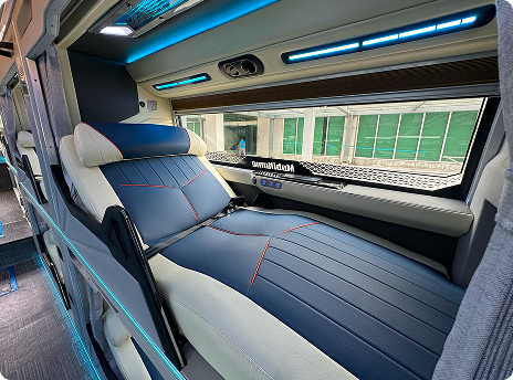 2×1 Lazyboy Seats • Air-conditioned • Entertainment Screen • On-board Toilet • Charging Port